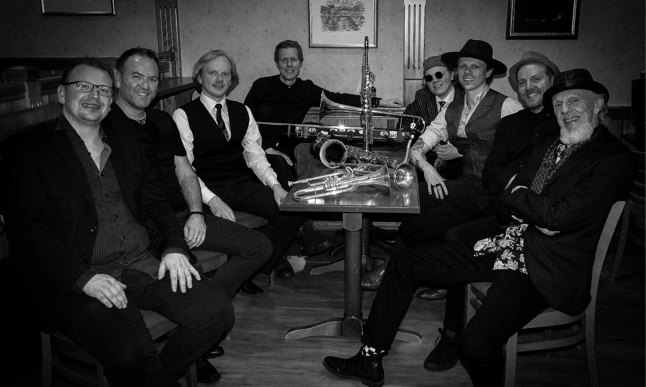 Gunnar Bech - vokal og trombone , Leiv Skeidsvoll - vokal og trompet, Lauritz Skeidsvoll - saxofon, Peder Skeidsvoll - trompet, Isach Skeidsvoll - piano, Frank Iversen - banjo/gitar, Sindre Klykken - kontrabass , Hans-Petter Gyldenskog - trommer