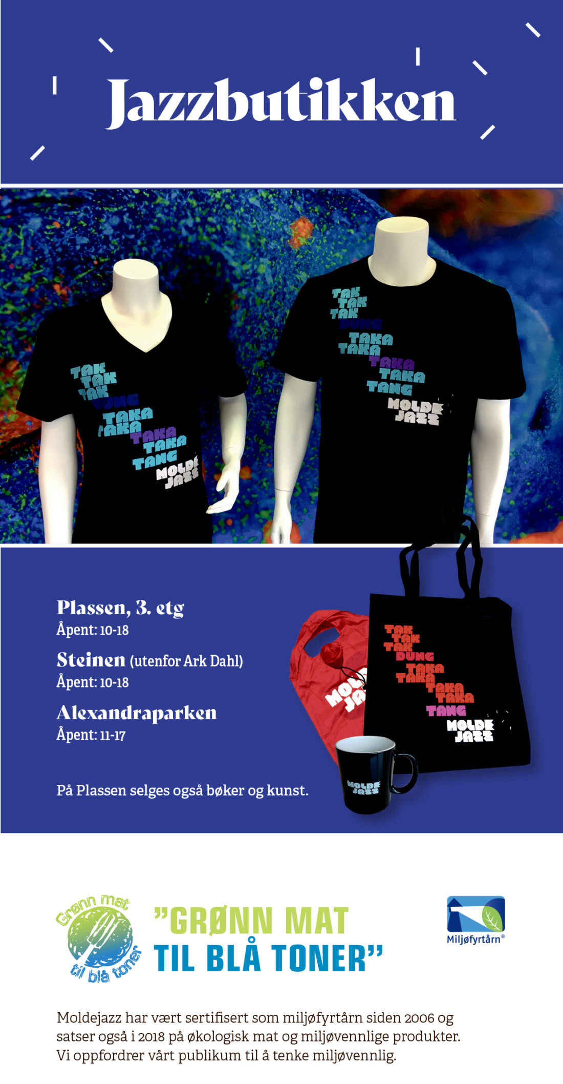 Effekter og billetter selges i Jazzbutikken under festivaluka. Vi selger også billetter på Plassen uka før festivalen fra 12:00 - 17:00.
