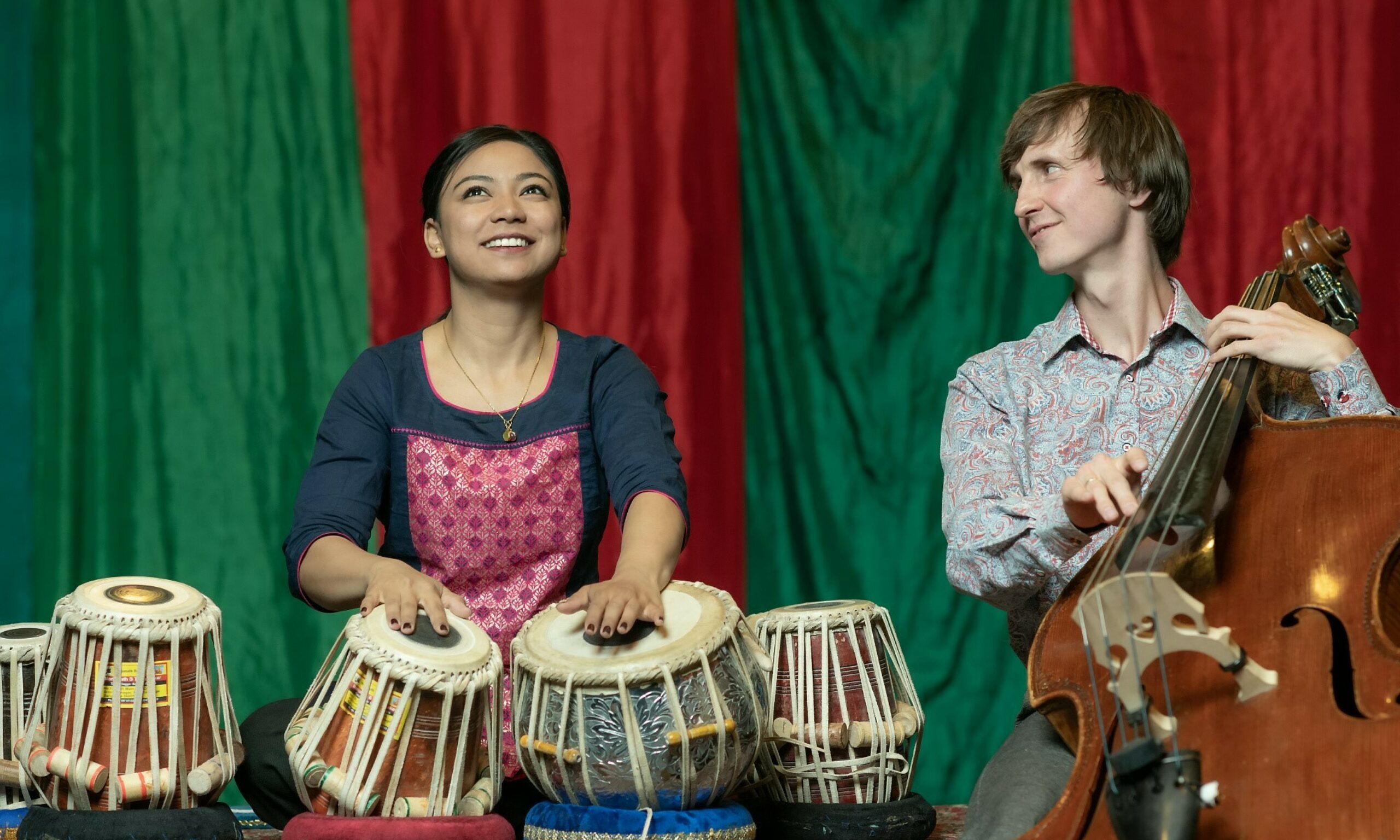 Kanskje du hører en hemmelighet? Sanskriti kommer fra Nepal og spiller tabla, og Erlend kommer fra Norge og spiller saksofon.